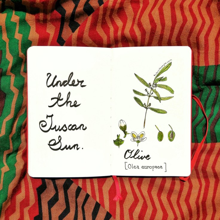 botanical, garden, Italy, olive tree, plants, sketchbook, travel, Tuscany