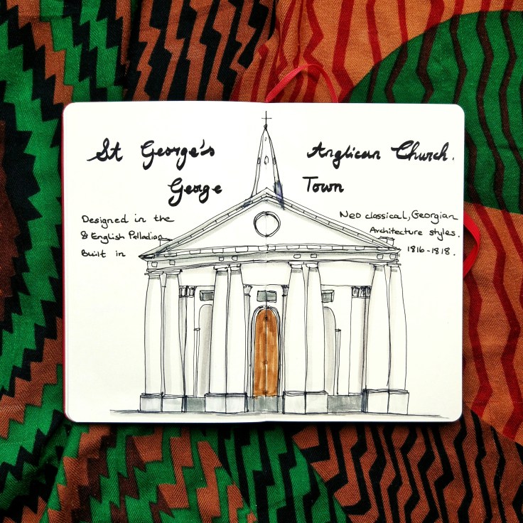 Sketch of the day in my moleskine art journal is of St Georges Anglican church in George Town, Penang.