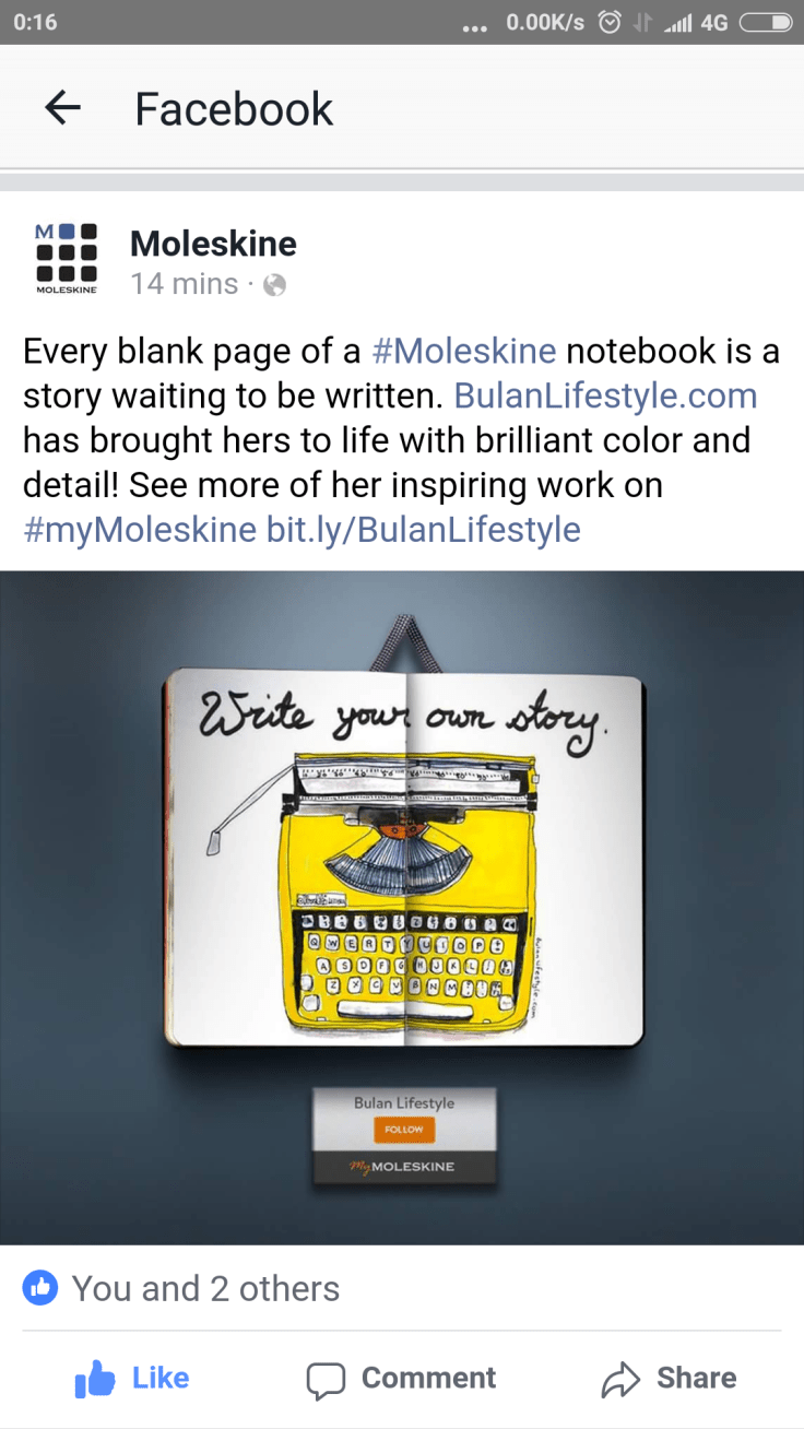 A big thank you to Moleskine, the makers of the legendary notebook. It is truly an honour to be featured on your social media and described as inspiring.