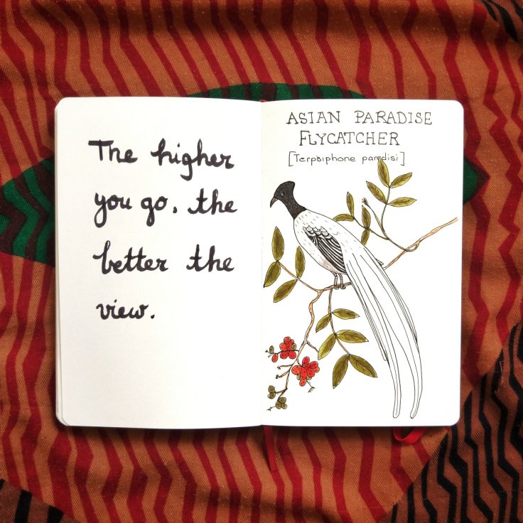 Sketch of the day in my moleskine art journal is of an Asian paradise flycatcher