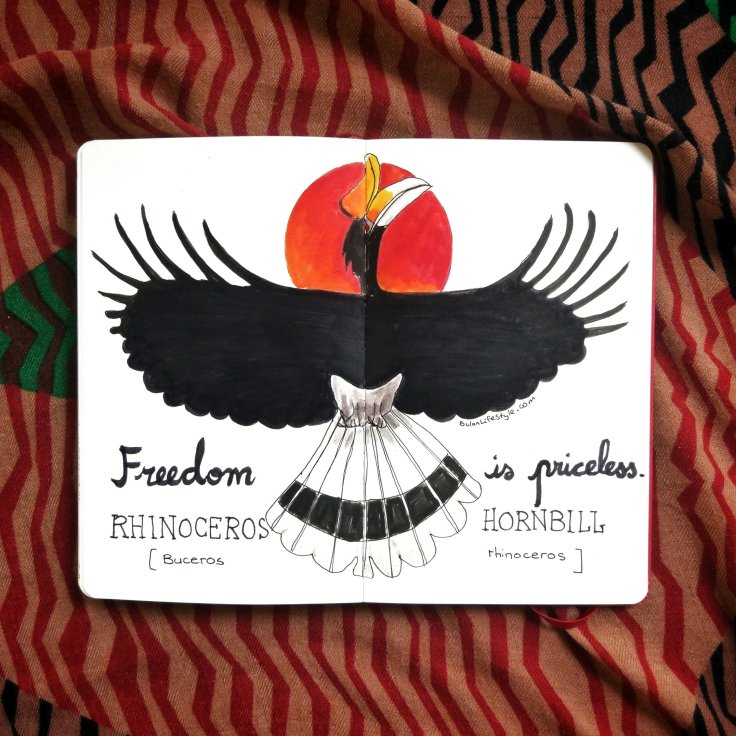 Sketch of the day in my moleskine art journal is of a rhinoceros hornbill.