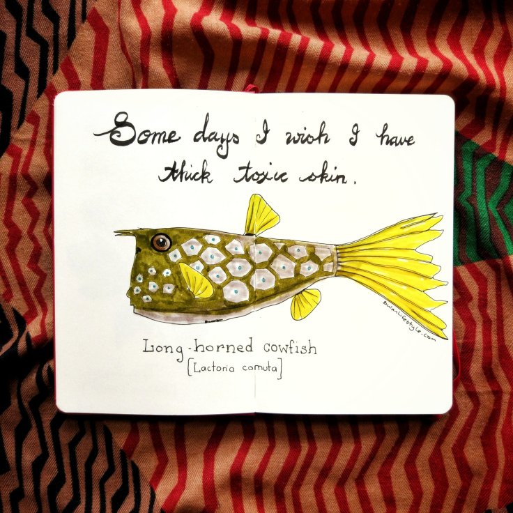 Sketch of the day in my moleskine art journal is of a long horned cowfish.