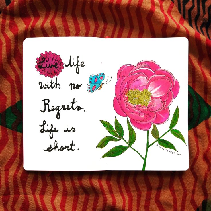Live life with no regrets. Life is short. Sketch of the day in my moleskine sketchbook is of a beautiful coral peony.