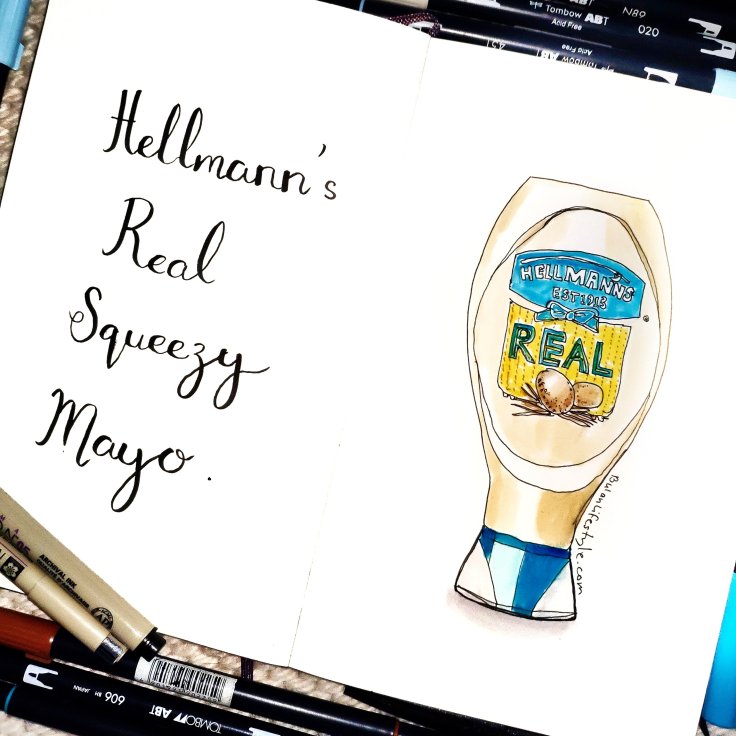 Sketch of the day no 1206 in my moleskine sketchbook is of a bottle of Hellman’s real squeezy mayonnaise.