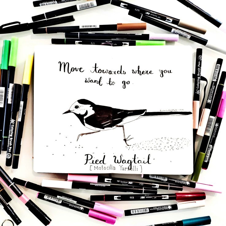 Happy Sunday. Move towards where you want to go. Sketch of the day no 1219 in my moleskine sketchbook: Pied wagtail