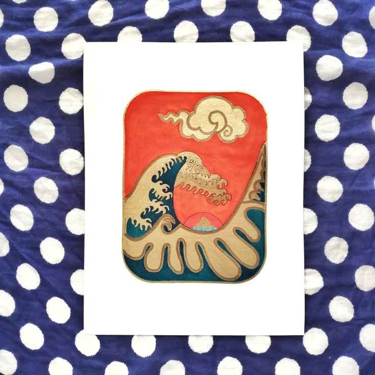 Sunday Surf. Inspired by the iconic ‘The Great Wave off Kanagawa’ by Japanese artist Hokusai. My works are hugely influenced by Japanese block prints which I absolutely adore. 💙