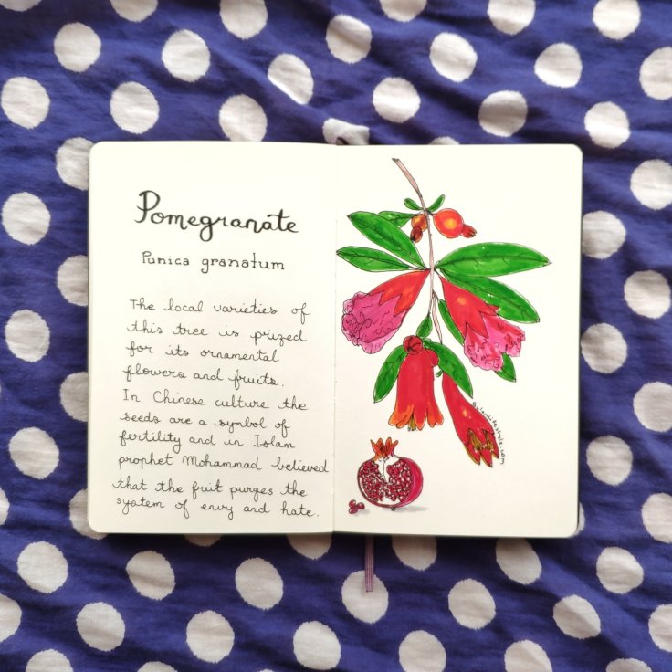 Sketch of the day no 1267 in my moleskine sketchbook is of a pomegranate flower and fruit.