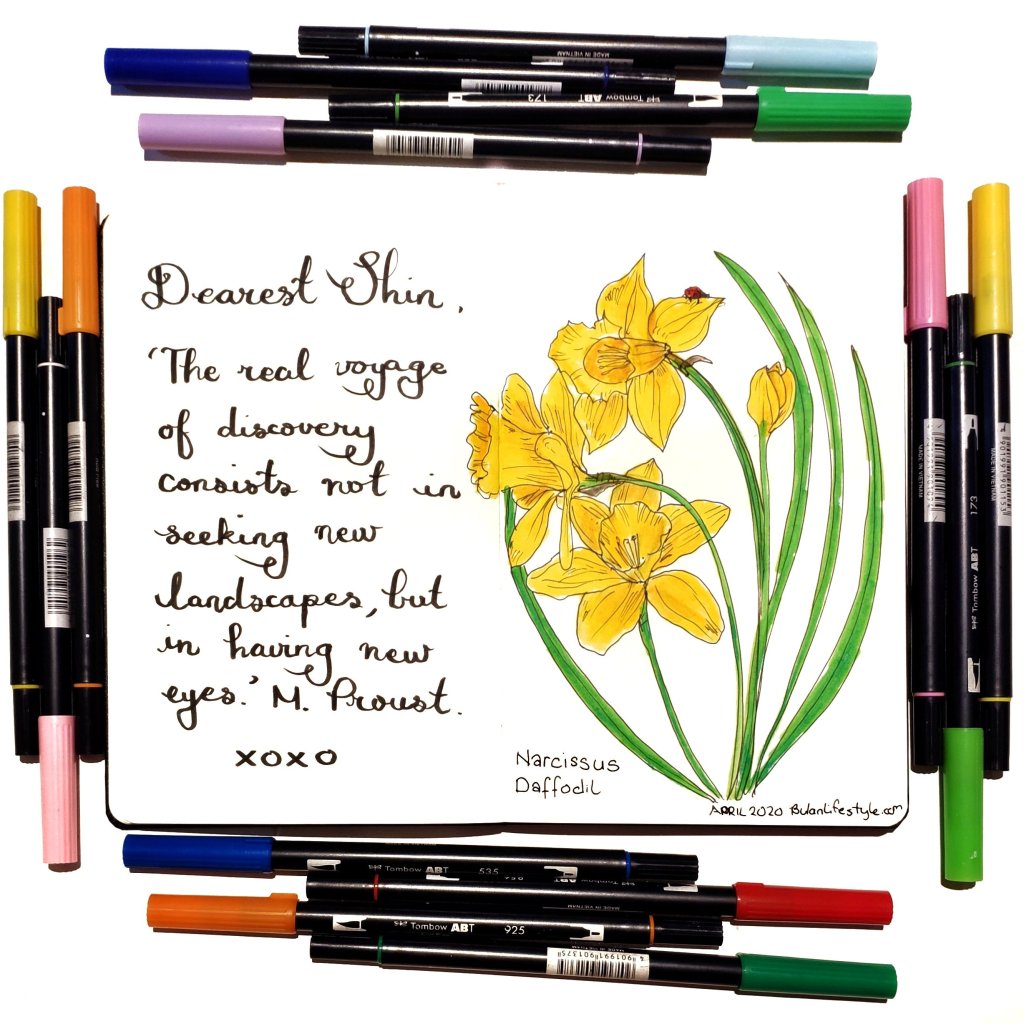 Sketch of the day no 1358 in my moleskine sketchbook: Daffodils for my friend Shin.