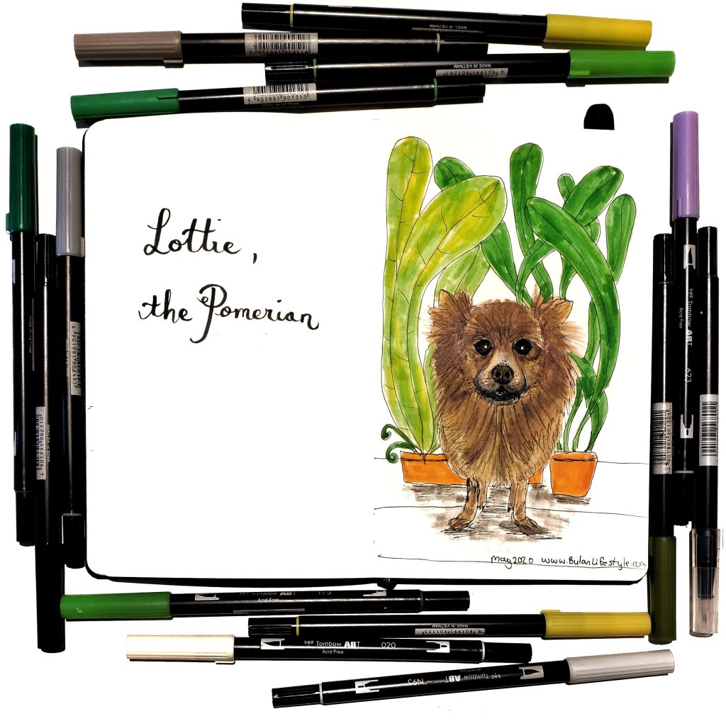 Sketch of the day no 1361 in my moleskine sketchbook : Lottie the pomeranian. 🐢