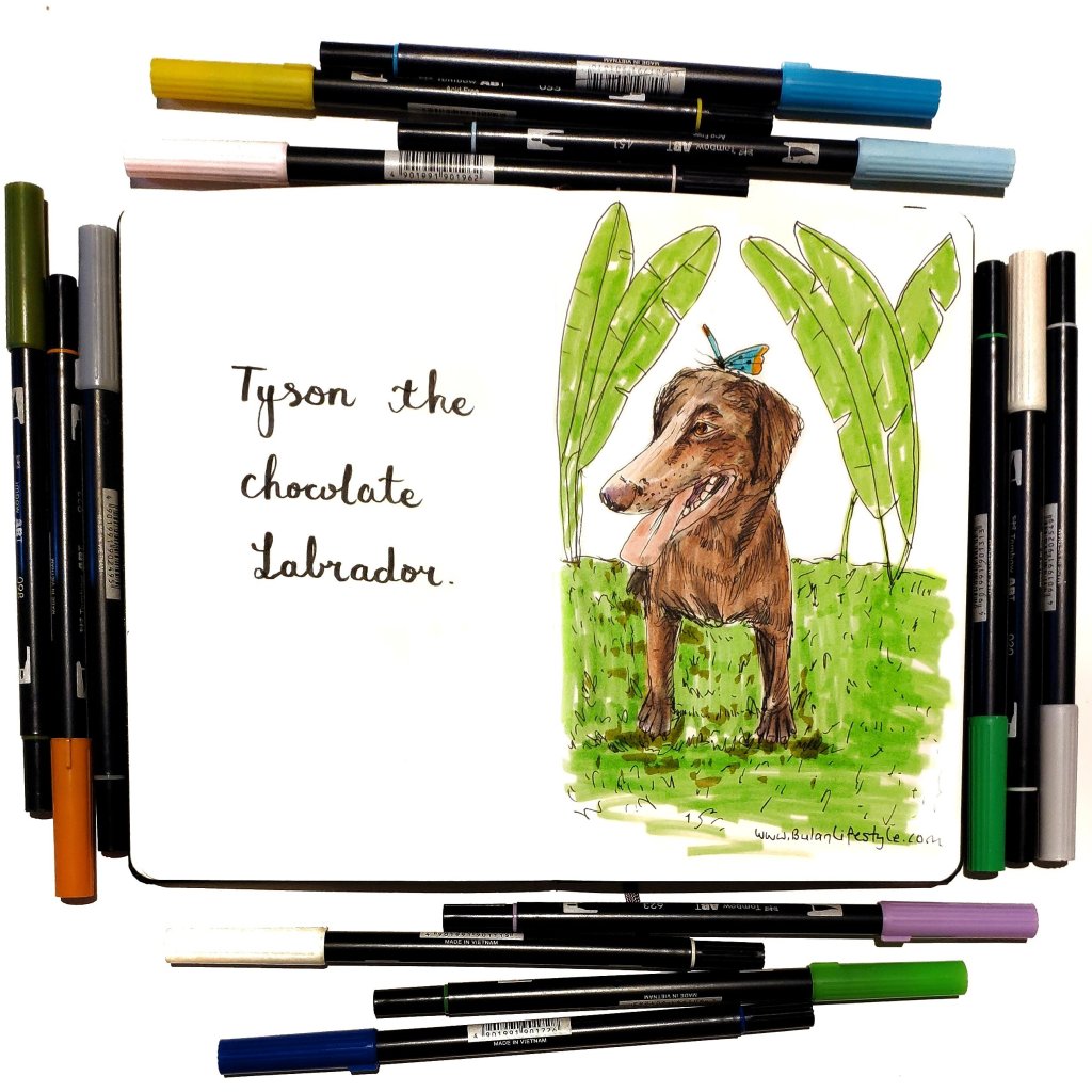 Sketch of the day no 1366 in my moleskine sketchbook is of Tyson the chocolate labrador.