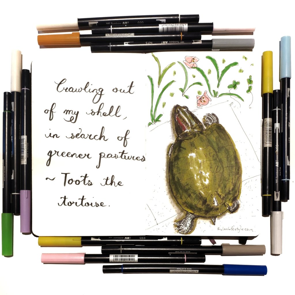 Sketch of the day no 1369 in my moleskine sketchbook : Toots the tortoise π’