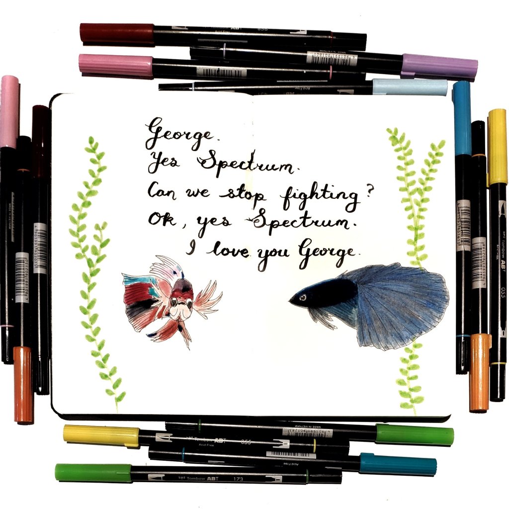 Sketch of the day no 1382 in my moleskine sketchbook: George and Spectrum 🐠 🐠