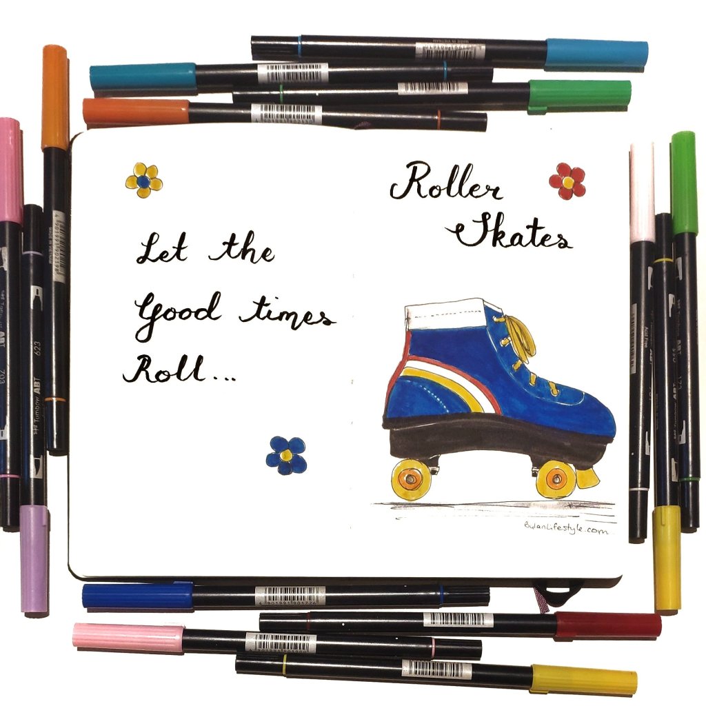 Sketch of the day no 1390 in my moleskine sketchbook is a pair of vintage roller skates.