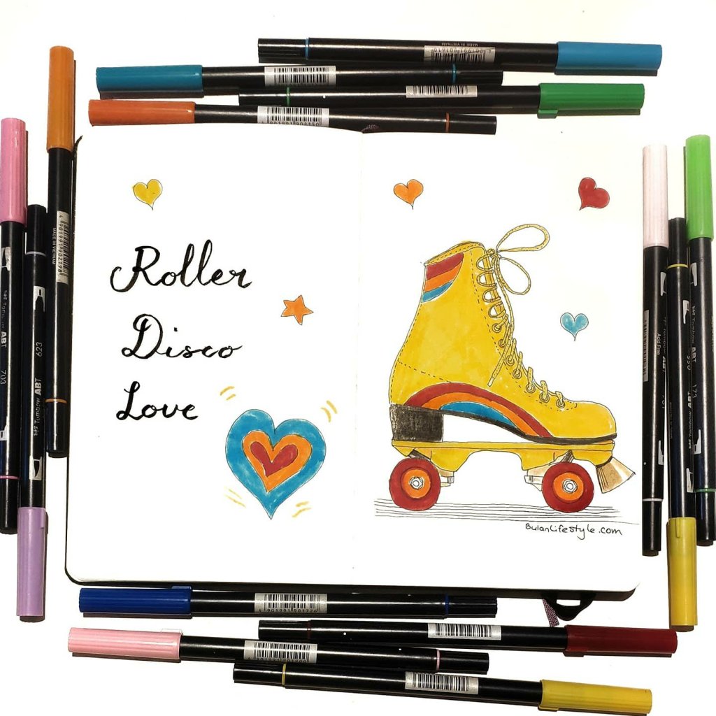 Sketch of the day no 1391 in my moleskine sketchbook : vintage roller skates.