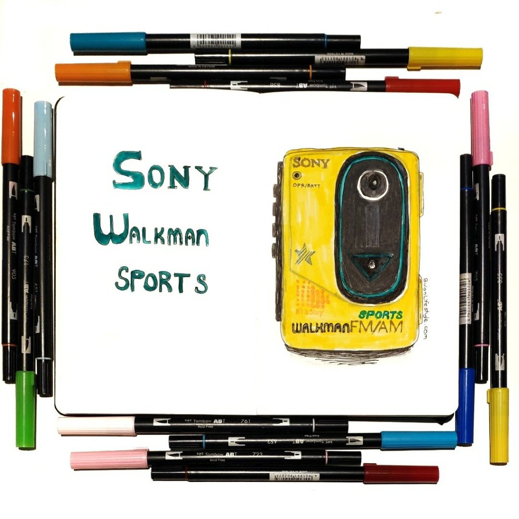 Sketch of the day no 1398 in my moleskine sketchbook: Sony walkman sports to play all those cassettes I’ve been drawing.