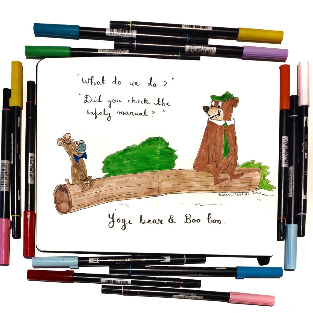 Sketch of the day no 1402 in my moleskine sketchbook is of yogi bear and boo boo.