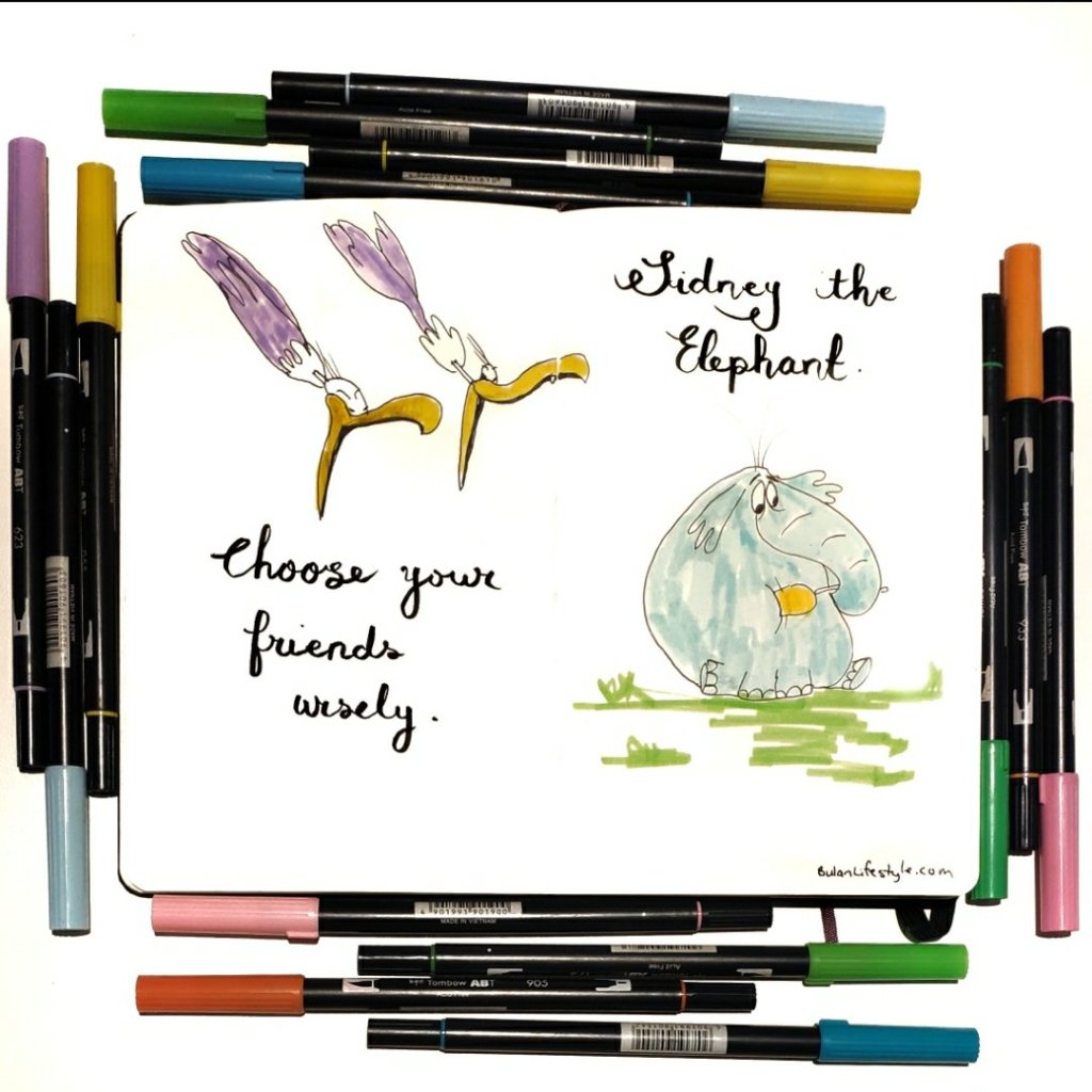 Sketch of the day no 1404 in my moleskine sketchbook is of Sidney the elephant and friends.