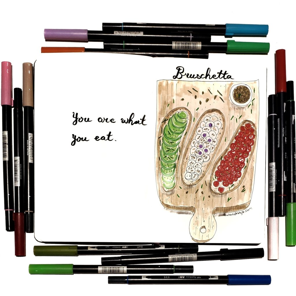 Sketch no 1416. Vegan bruschetta. This is how my meals look like now since giving up dairy…