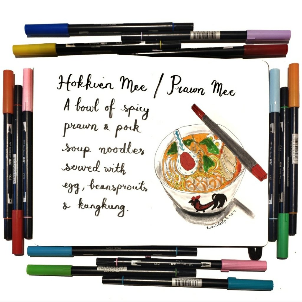 Today’s sketch no 1424 is Hokkien mee or Prawn mee as it is know off the island.