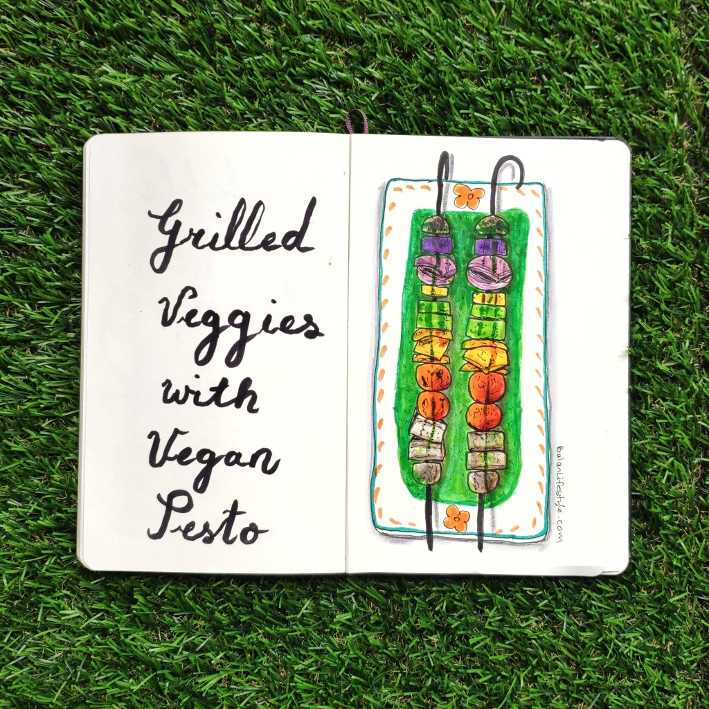 Sketch no 1433 grilled veggies with vegan pesto to stay healthy.