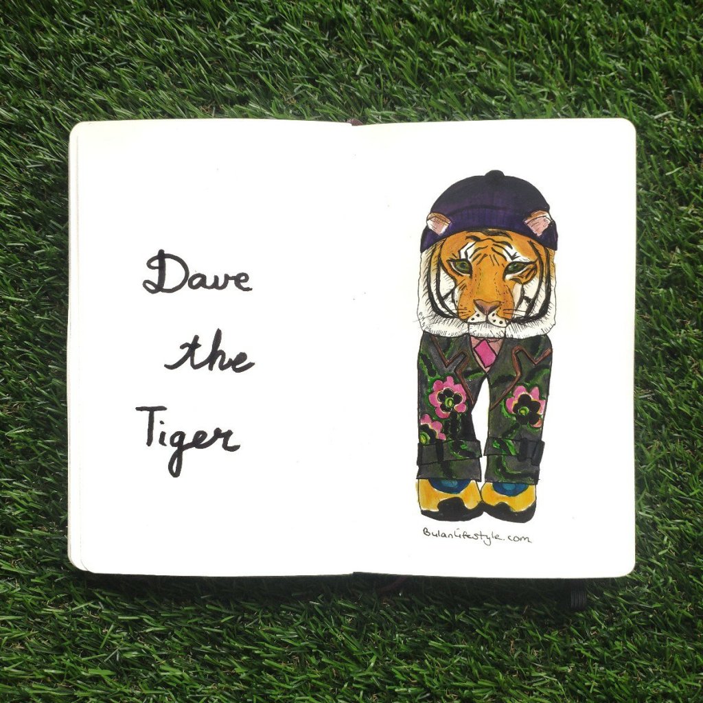 Sketch of the day no 1468 in my moleskine sketchbook : Dave the tiger In Gucci SS21