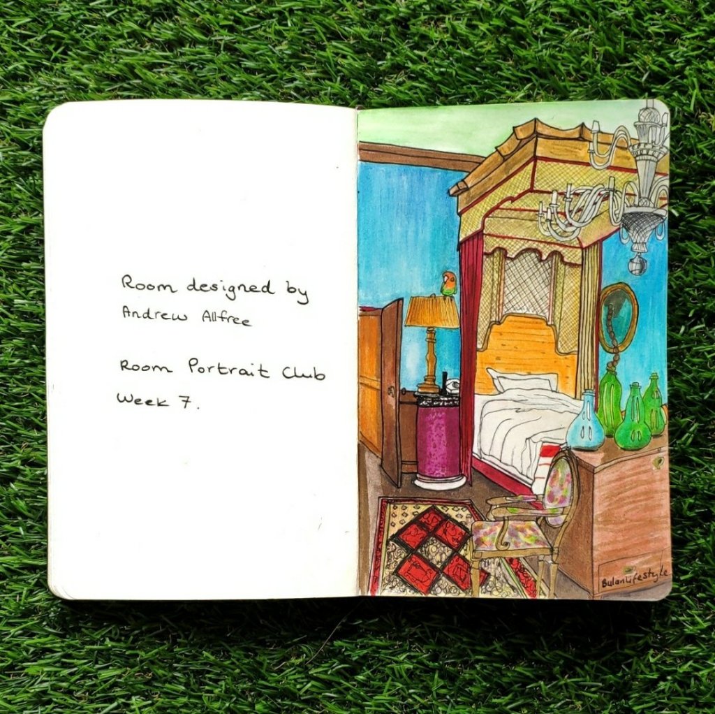 Are you nosey like me and love to look at room interiors? This is such a beautiful bedroom by Andrew Allfree. I love the blue wall and grand scale of the oversized furniture.