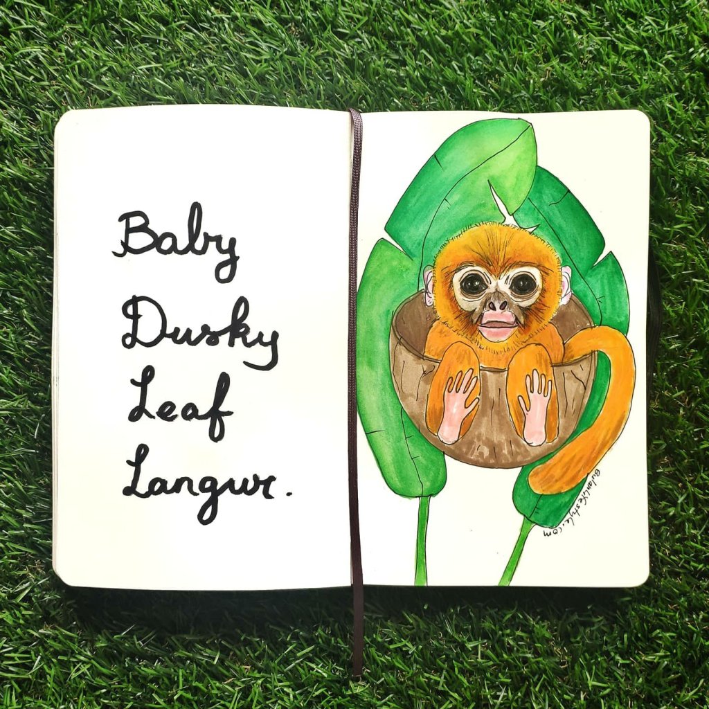 Today’s sketch is of a Golden baby dusky leaf langur. They are golden when they are born till about 6 months. I’ve never been lucky enough to spot one in all my jungle walks despite most people I know telling me they have… I hope to see one soon before they disappear 🐵