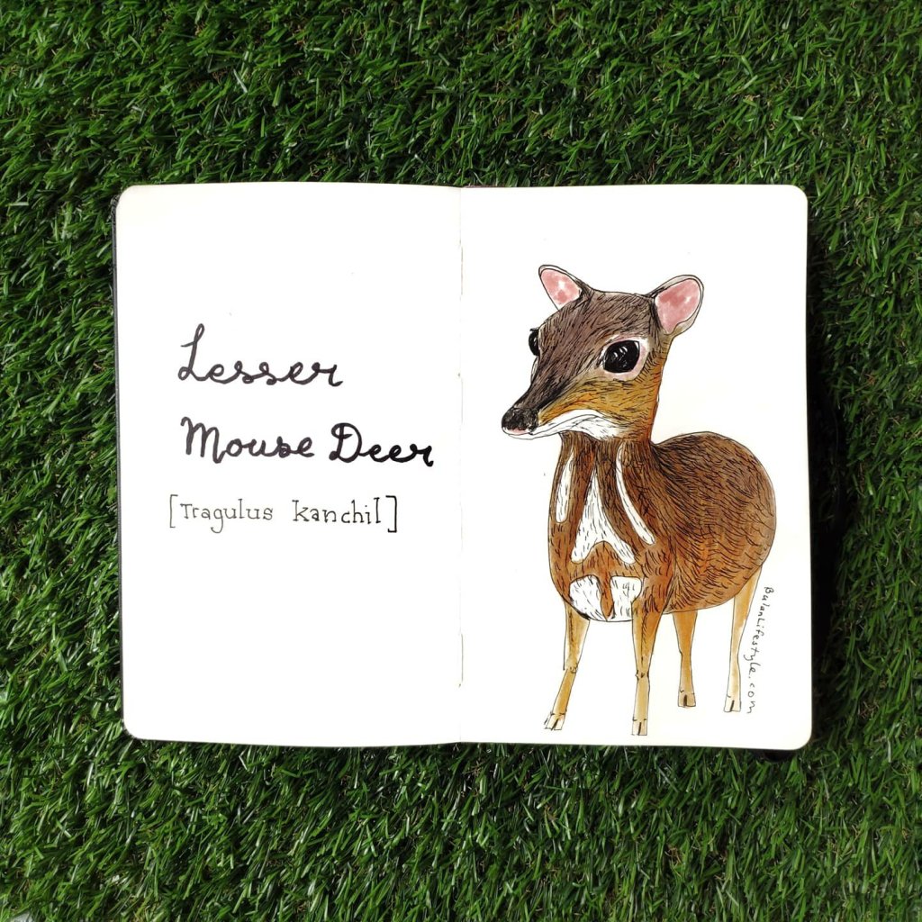 In my mind, and in my dreams, I would love to create an illustrated book of Malaysian wildlife. It may take a while, it may not come to anything but I will start with a few of the amazing wildlife that we have. The mouse deer is something of a childhood memory like elephants and tigers that you read about in books. It is the smallest hoofed mammal and only grows to 18 inches in size. In children’s stories, Sang Kancil is alive because of its shrewdness and wit. I’ve always loved this small creature but have yet to spot one as they are shy nocturnal animals.