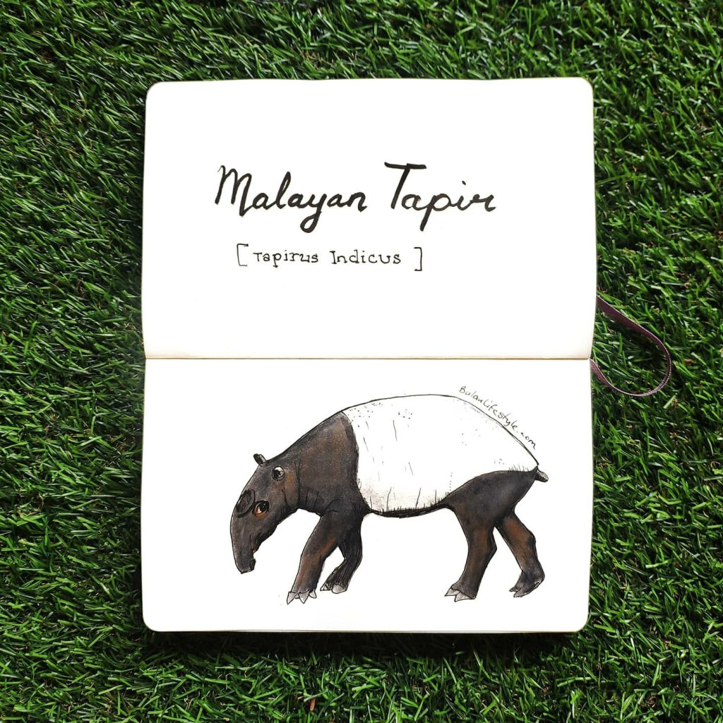 Sketch of the day no 1495 in my moleskine sketchbook is of a Malayan Tapir.