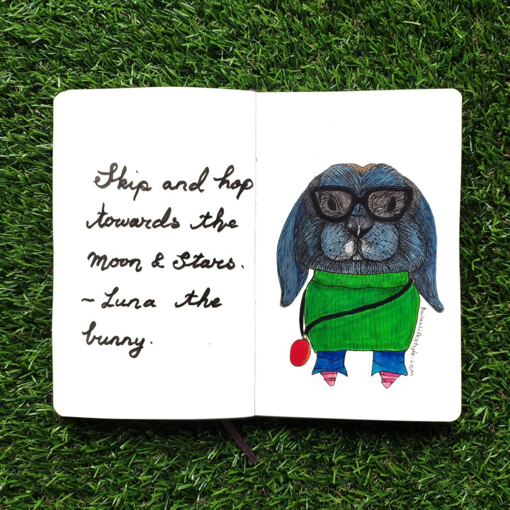 Sketch of the day no 1498 in my moleskine sketchbook : Luna the bunny in Balenciaga SS21.
