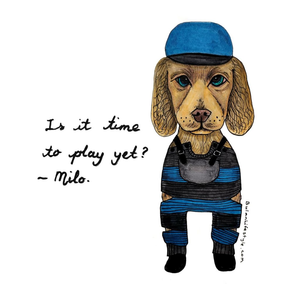 Sketch of the day no 1506 in the moleskine sketchbook is of Milo the Golden Retriever dressed in Burberry SS21