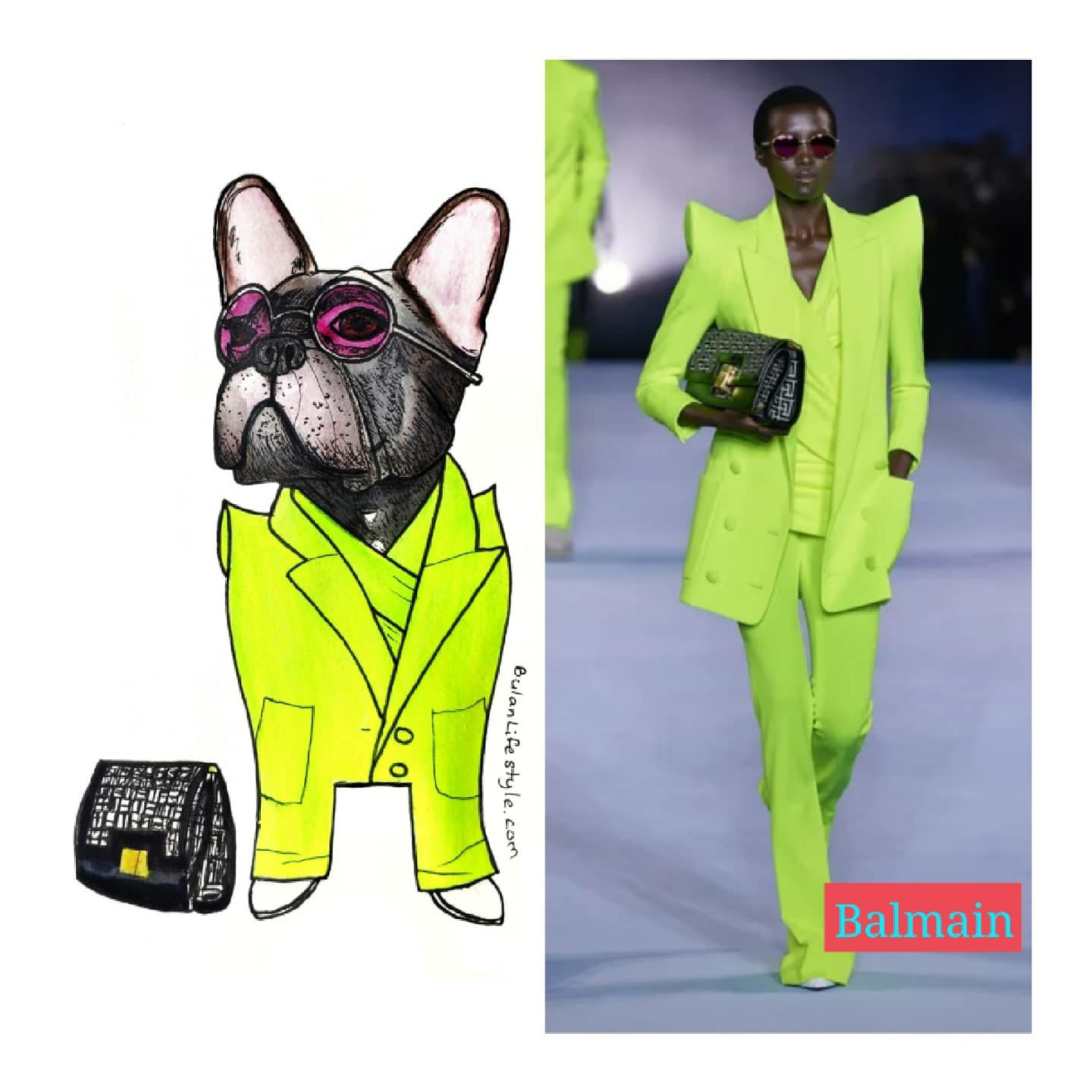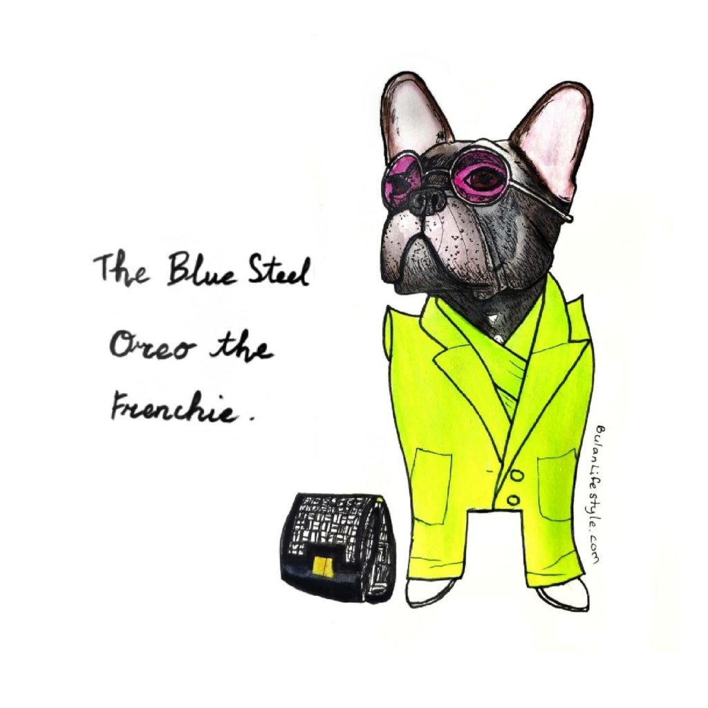 Oreo the French Bulldog pet portrait fashion makeover styled in Balmain SS21