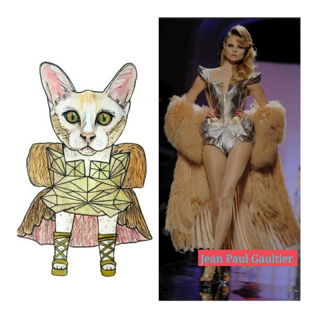 Nala the warrior pet portrait fashion makeover styled in vintage Jean Paul Gaultier