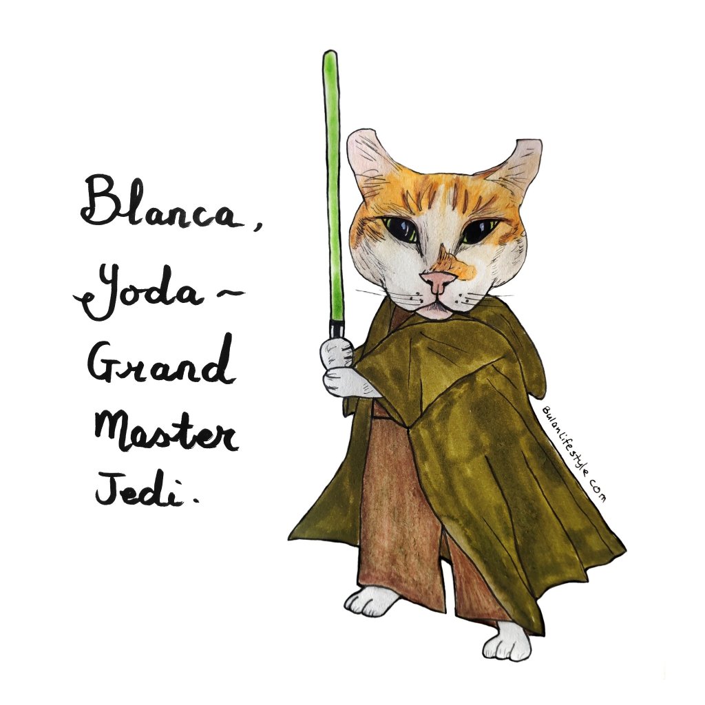 Blanca the Scottish fold cat pet portrait fashion makeover styled as Yoda the Jedi Master.