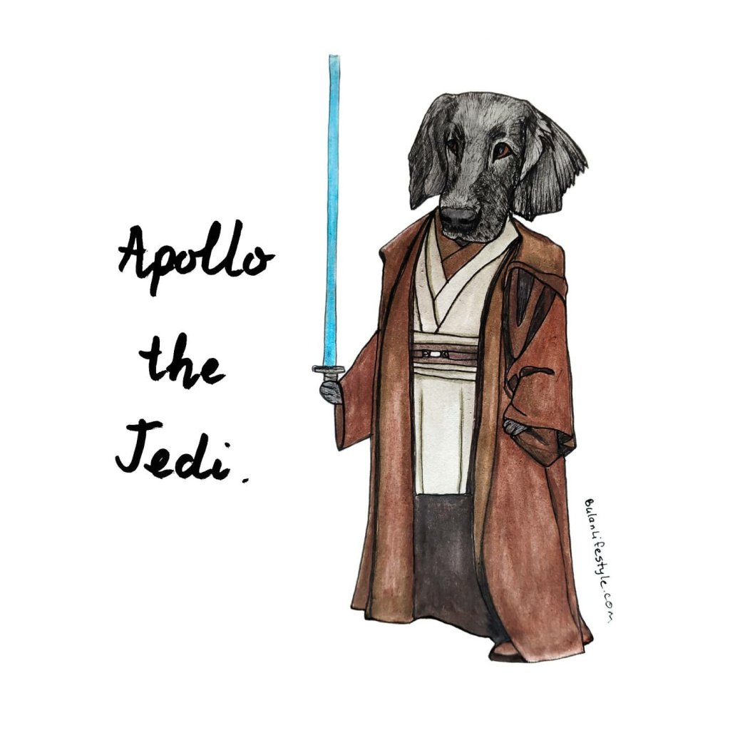 Apollo pet portrait fashion makeover styled as Jedi Master Obi – Wan