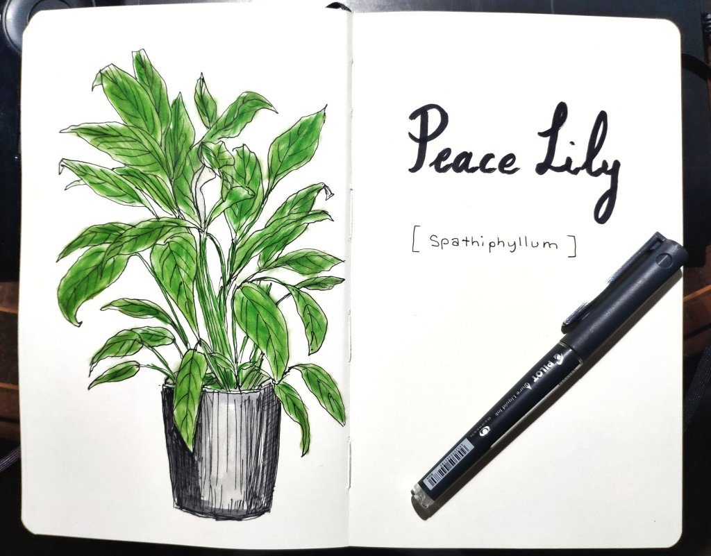 Today’s Sketch is of my Peace Lily plant that keeps the air in my apt fresh and clean. Since lockdown begun last year, I’ve become a plant mum to many plant babies. 🌿