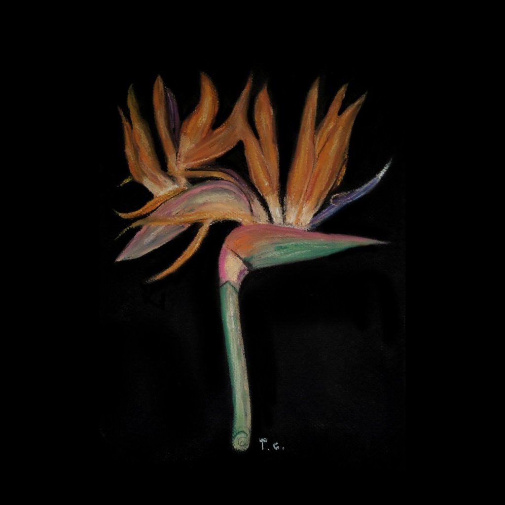 Study of Stretlitzia reginae aka bird of paradise in pastels on paper.ย Reference image by Francis Bauer from my key gardens botanical book.
