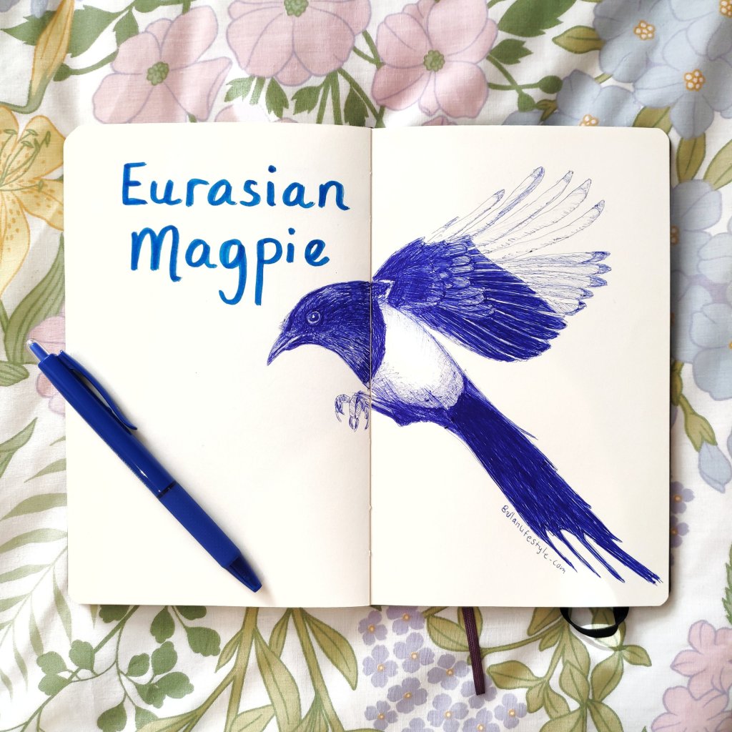 It’s cold outside and I’m hiding under the covers in bed. Then I saw a magpie walking across the roof minding her own business. I felt compelled to draw. This is an example of how motivation can come in any form and at any time.