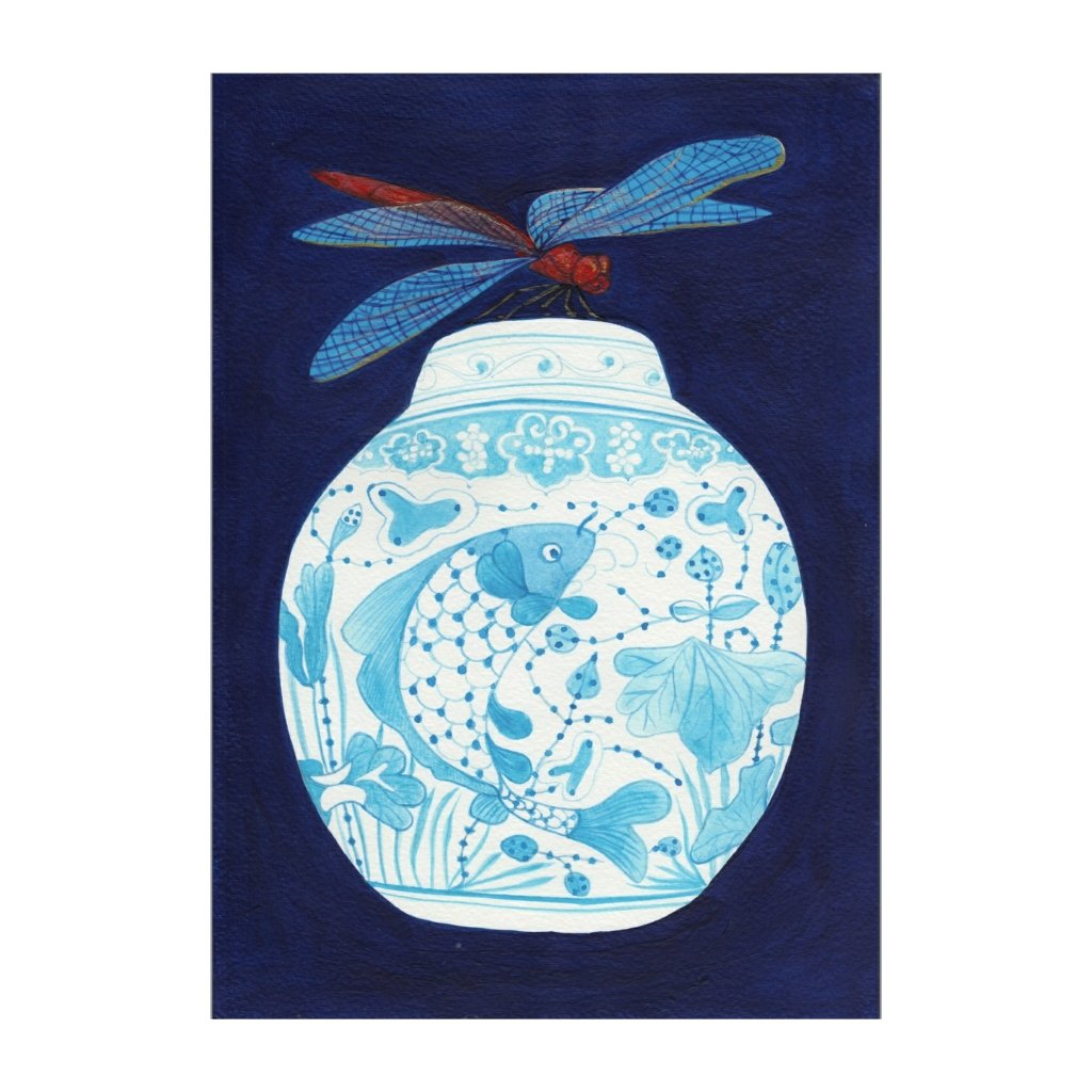 Blue and white Chinese ginger jar with Malaysian dragonfly