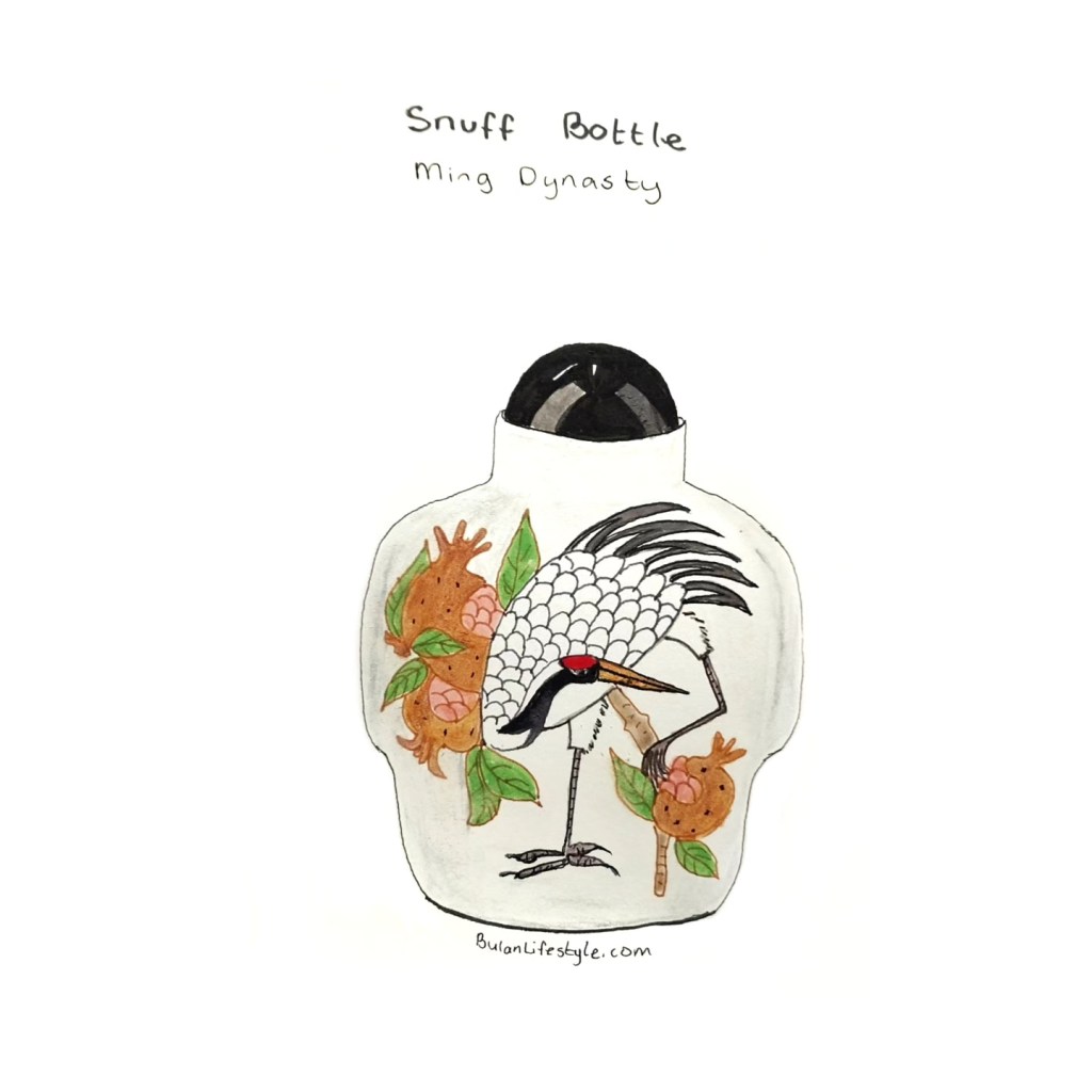 Drawing of the day is of a snuff bottle with Chinese crane and pomegranate.