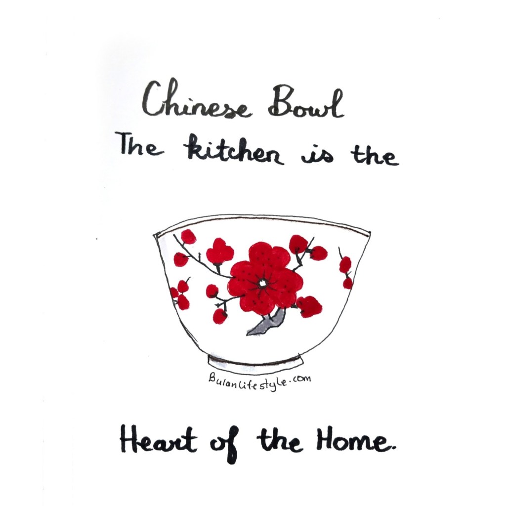 Sketch of a Chinese porcelain rice bowl. The kitchen is the Heart of the Home.