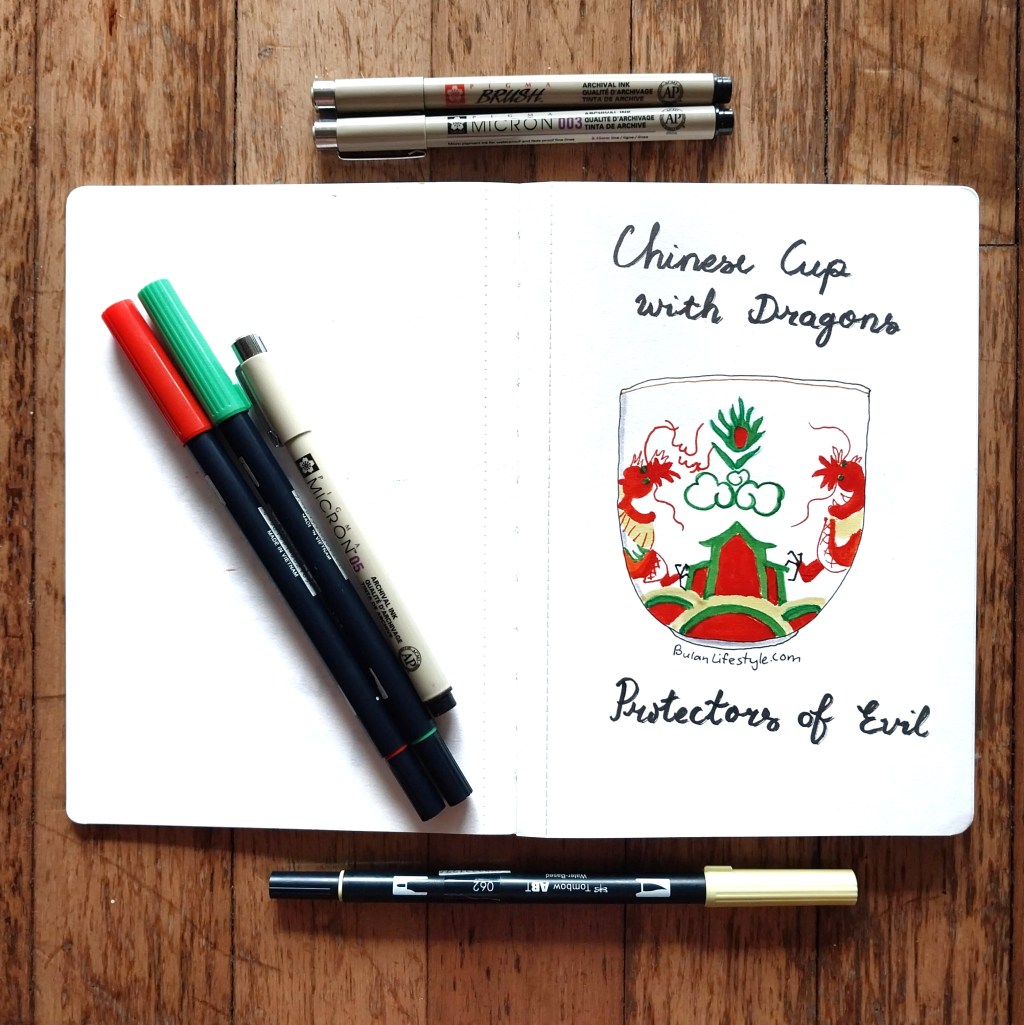 A Chinese cup with double dragon motif. Dragons are protectors of evil. 🐉🐉