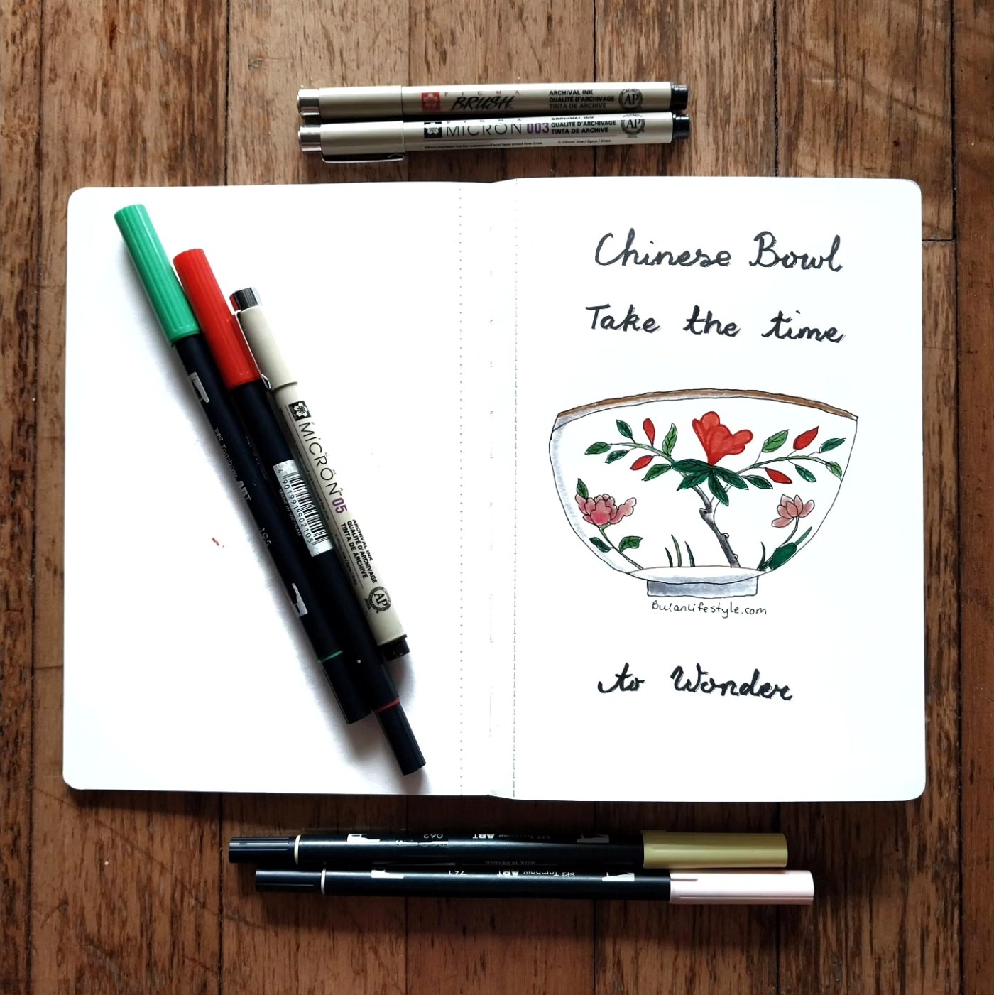 Chinese bowl Don't get too caught up with the daily grind.Take the time to wonder. Sketch of the day is of a Chinese bowl with flowers. I enjoy drawing everyday objects because it makes me look carefully at what we... Continue Reading →