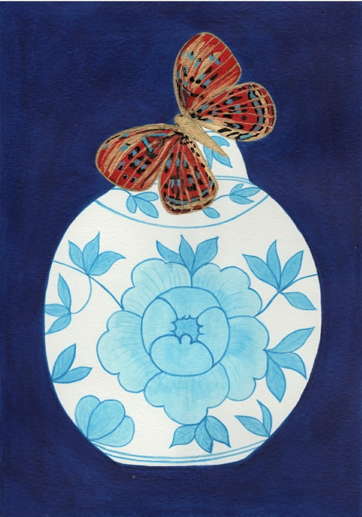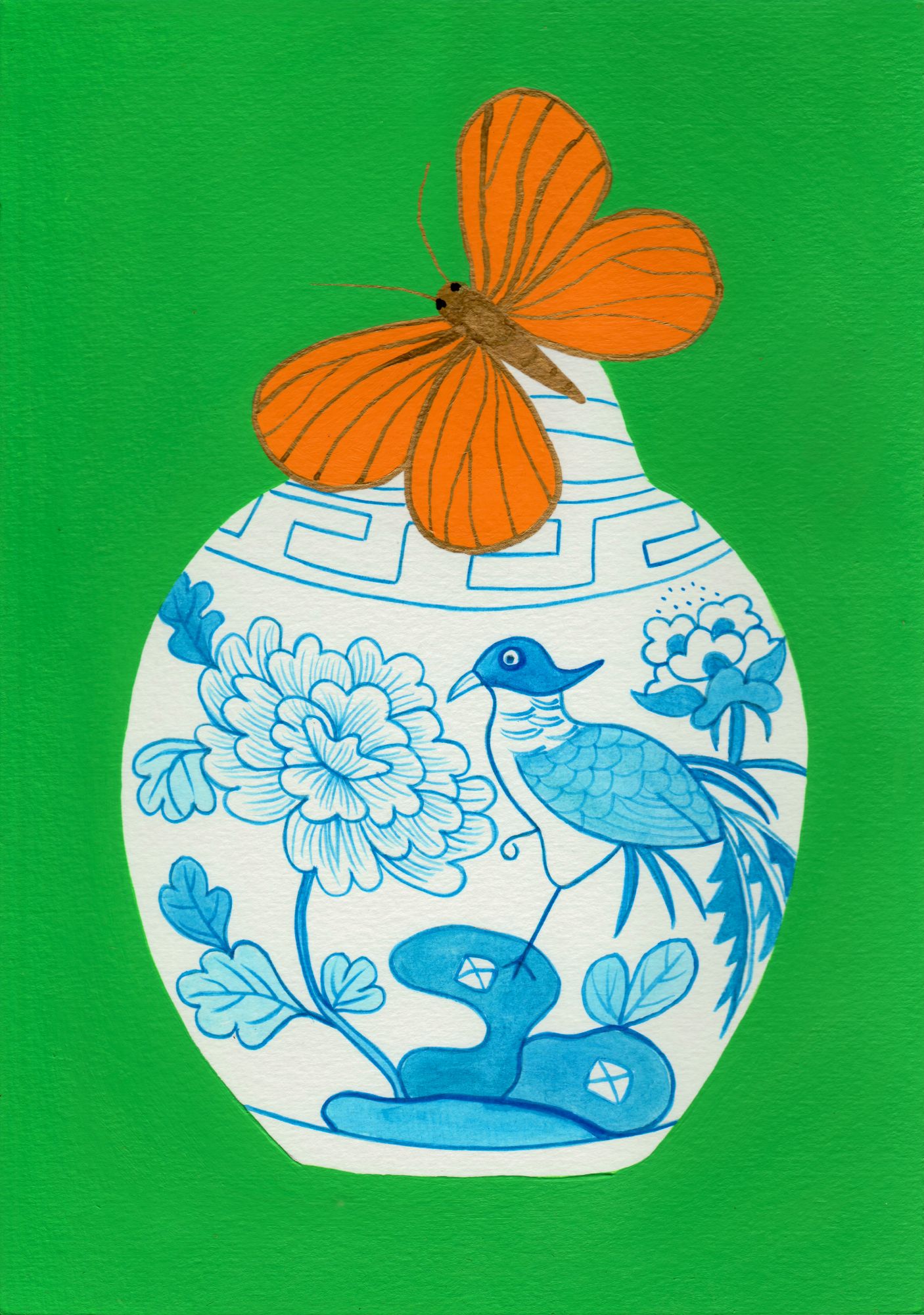 I love all things Chinoiserie as they represent how I grew up as a third culture kid. I use my art to explore my identity. I am ethnically Chinese but my ancestors migrated to Malaysia (Malaya) in the 1800s. I grew up in Penang, Malaysia and continued my studies in the UK and France. My sense of culture is a mish mash of memories growing up in our global melting pot. Ultimately we are all connected through cultural exchange over time and movement. This why my artworks have a feeling of longing, nostalgia and familiarity. It is a celebration of life and its people as one.