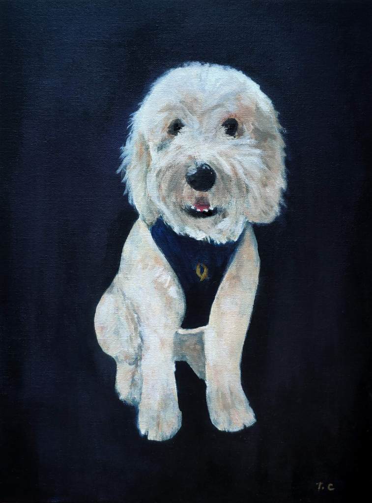 Pet portrait paintings. Acrylic on canvas board. Size 240 x 300 mm. Commissions open.