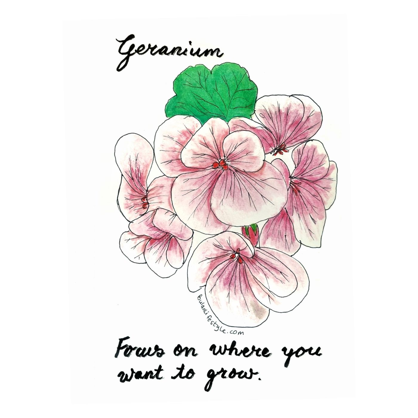 Today's flower of the day is the Geranium. Focus on where you want to grow and be grateful for the things you have. I'm just catching up with my backlog of flower sketches.